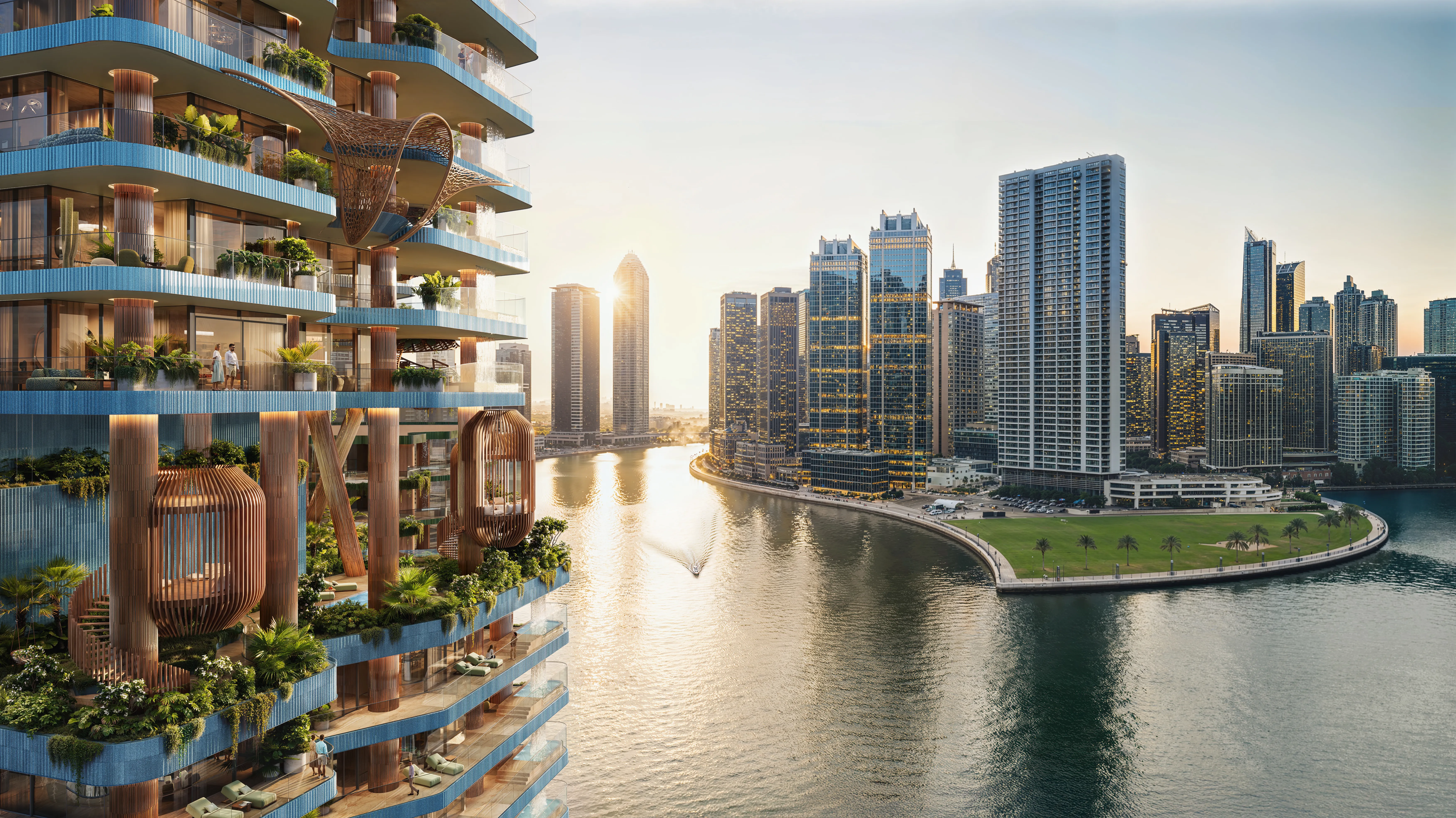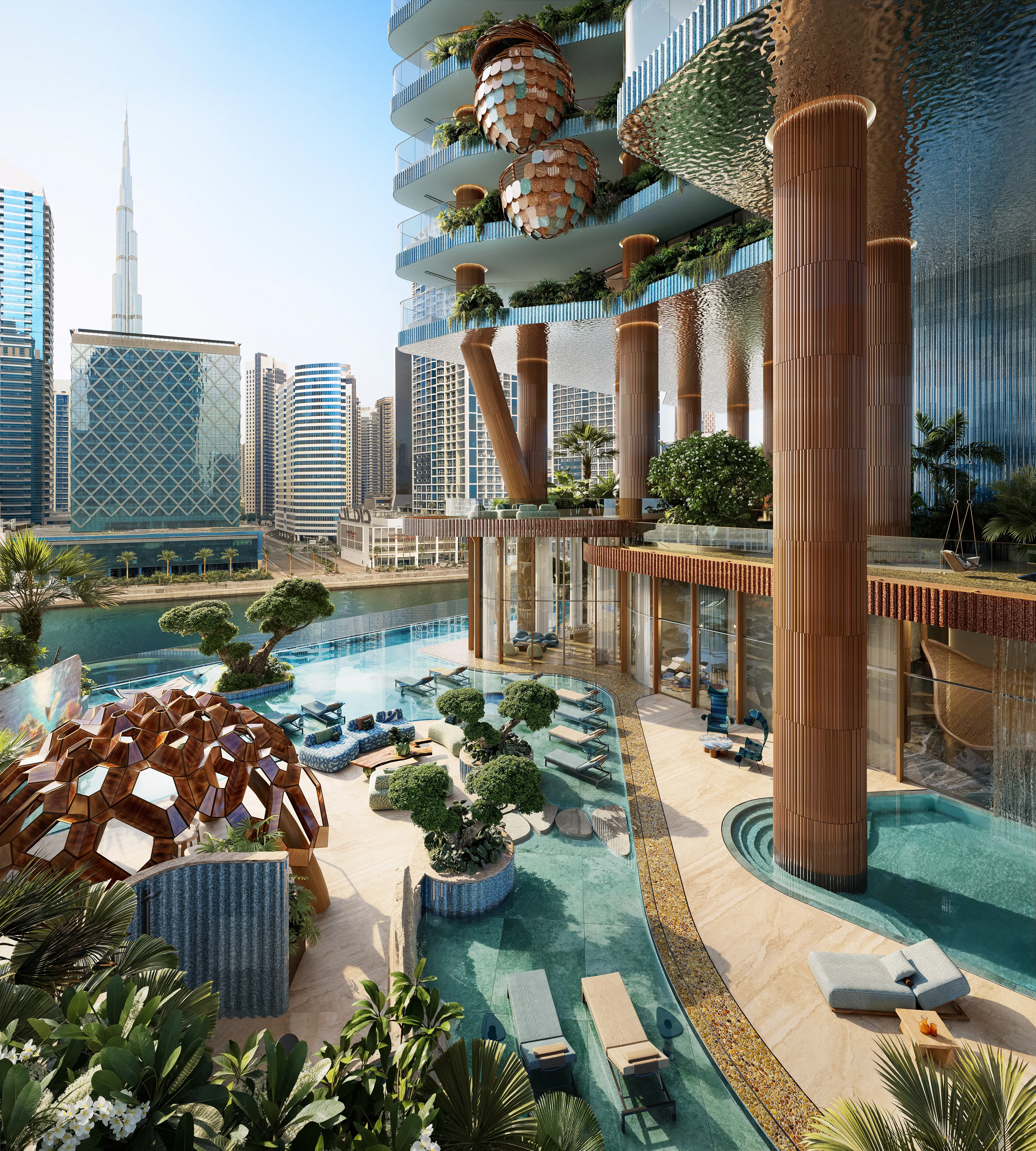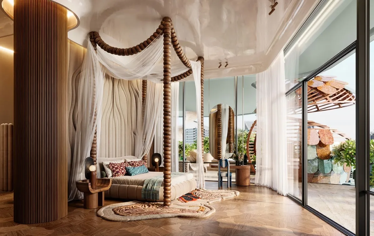Eywa Way of Water ist ein Meisterwerk des luxuriösen Wohnens und bietet eine exklusive Auswahl an Apartments mit 2, 3 und 4 Schlafzimmern, Maisonette-Wohnungen mit 3, 4 und 5 Schlafzimmern sowie großzügigen Penthäusern mit 5 Schlafzimmern. Entworfen von Zane Tetere-Sulce von OAD und entwickelt von einem europäischen Team, definiert dieses architektonische Juwel raffiniertes und genussvolles Wohnen neu – mit außergewöhnlicher Qualität, natürlichem Licht und Panoramablick. Jede Residenz ist aus nachhaltigen, schadstofffreien Materialien gefertigt, mit hochwertigen Oberflächen ausgestattet und verfügt über einen direkten Aufzugszugang, der ein Leben voller Komfort und Eleganz garantiert. Die erstklassigen Annehmlichkeiten des Projekts schaffen eine Atmosphäre der Harmonie und Erholung. Bewohner können sechs exquisite Pools, ein hochmodernes Fitnesscenter von Nohrd, Yoga- und Meditationsräume sowie eine einzigartige Klangheilungspyramide genießen. Vom luxuriösen Spa und Teehaus über die Gesundheitsbar und das Open-Air-Kino bis hin zum schwebenden Kamin – jedes Element fördert Ruhe, Verbundenheit und ganzheitliches Wohlbefinden. Eywa Way of Water besticht durch wegweisende Wellness-Technologie und Liebe zum Detail. Fortschrittliche Luft- und Wasserreinigungssysteme, EMF-Schutz und Smart-Home-Integration heben den Alltag auf ein neues Niveau an Komfort und Ruhe. Mit WELL-, LEED- und WiredScore-Platinum-Zertifizierungen präsentiert sich dieses visionäre Projekt als Oase der Balance, des Luxus und moderner Eleganz in Dubais begehrtester Lage.